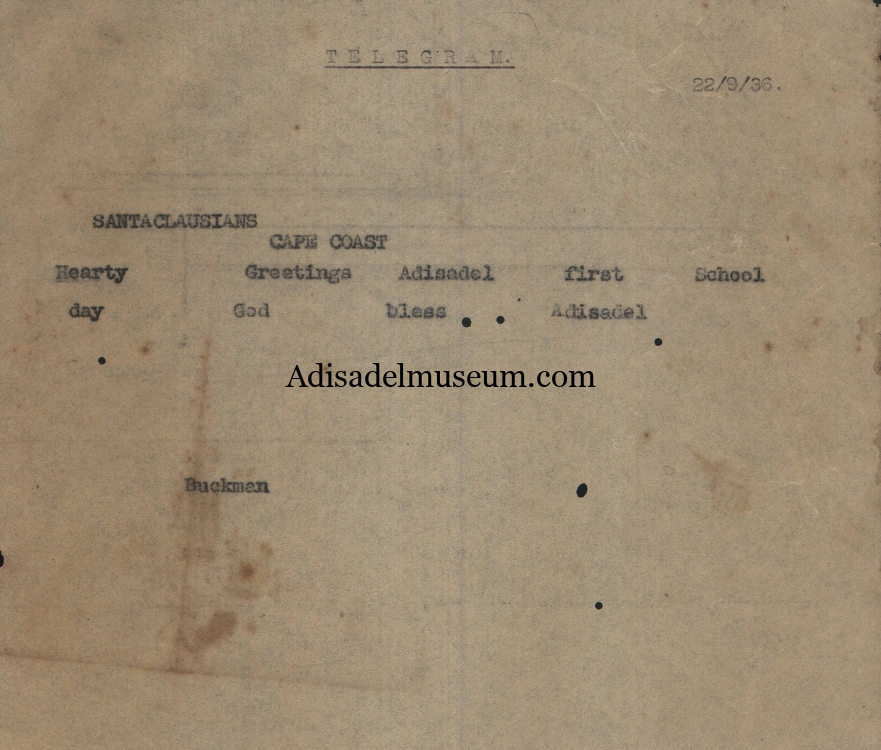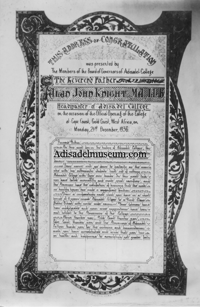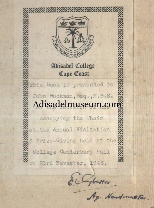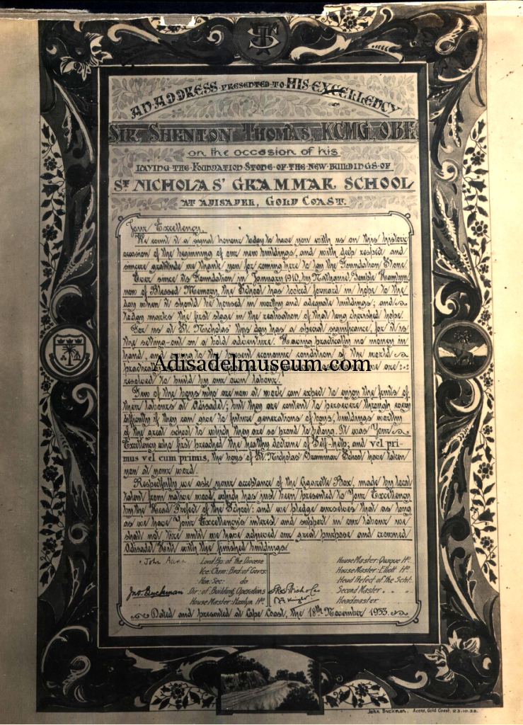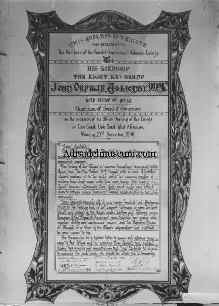At 5 o’clock the School was officially opened by the Lord Bishop of Accra. There were present (the undersigned)