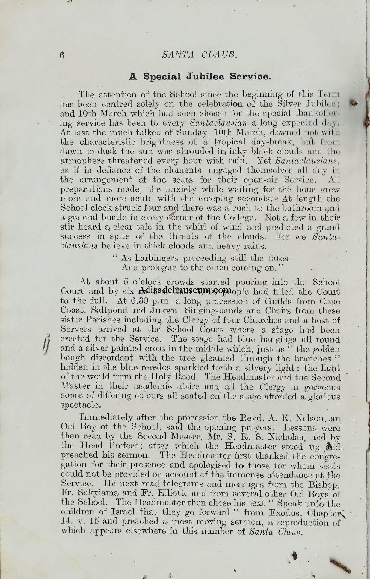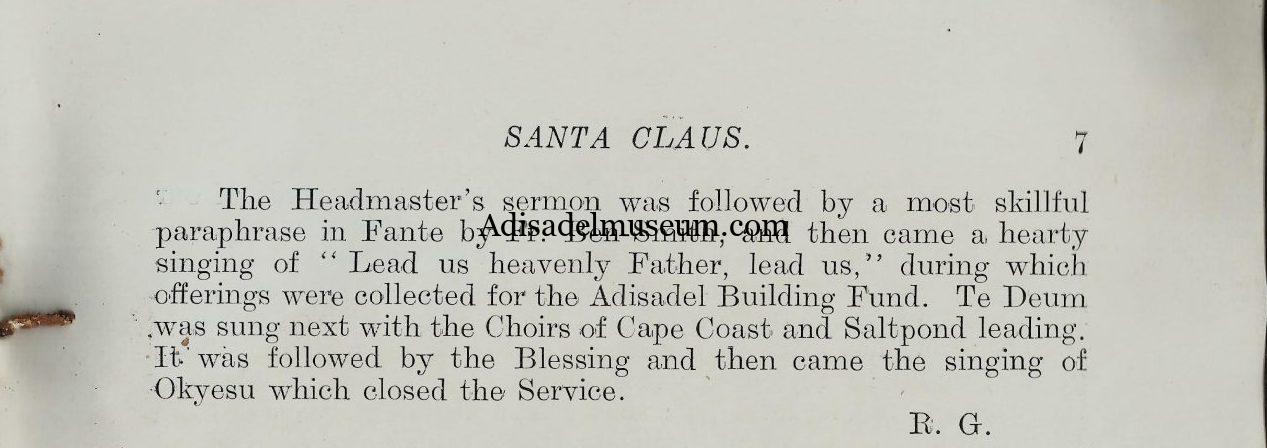 Incontrovertible evidence from an archival source, the 1933 version of the Santa Claus Terminal Magazine, Vol. 2, however, disproves Amissah`s mainstream narrative on the meaning of the name Adisadel. In the volume, the celebrated economist cum global diplomat, Dr. Robert Kweku Atta Gardiner, the then Assistant Head Prefect who was close to history as a continuing student, posited that the name Adisadel is simply the vulgarisation of a personal name, Alice Adele, which means ‘The Exalted Noble’. The name Alice means ‘Exalted’, ‘Exalted One’ or ‘Person of Noble Rank’, and Adele is a Germanic-Dutch name which means ‘Noble’ or ‘Nobility’, thus Adisadel by extension is a derivative of ‘The Exalted Nobleman’ or ‘The Exalted Man of Nobility’.